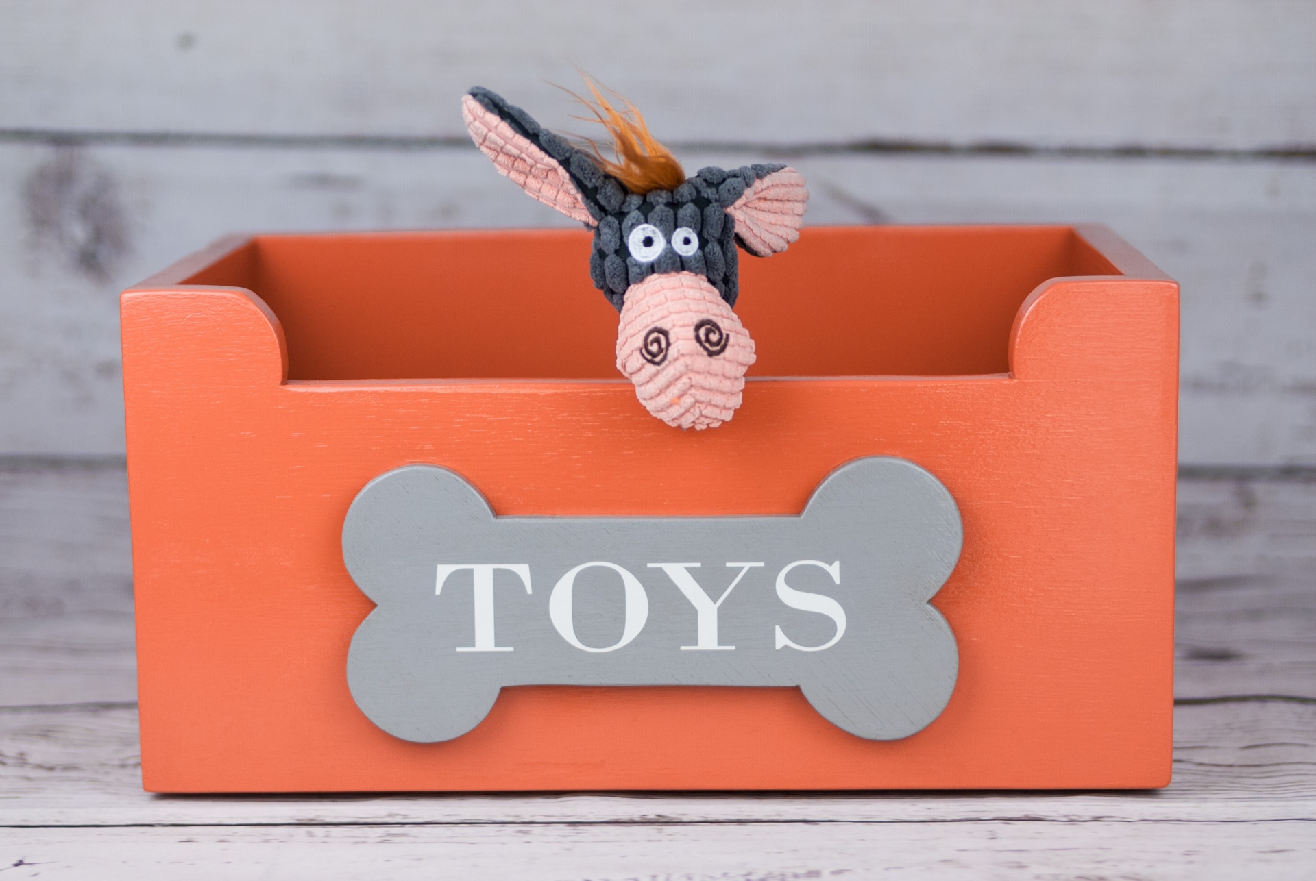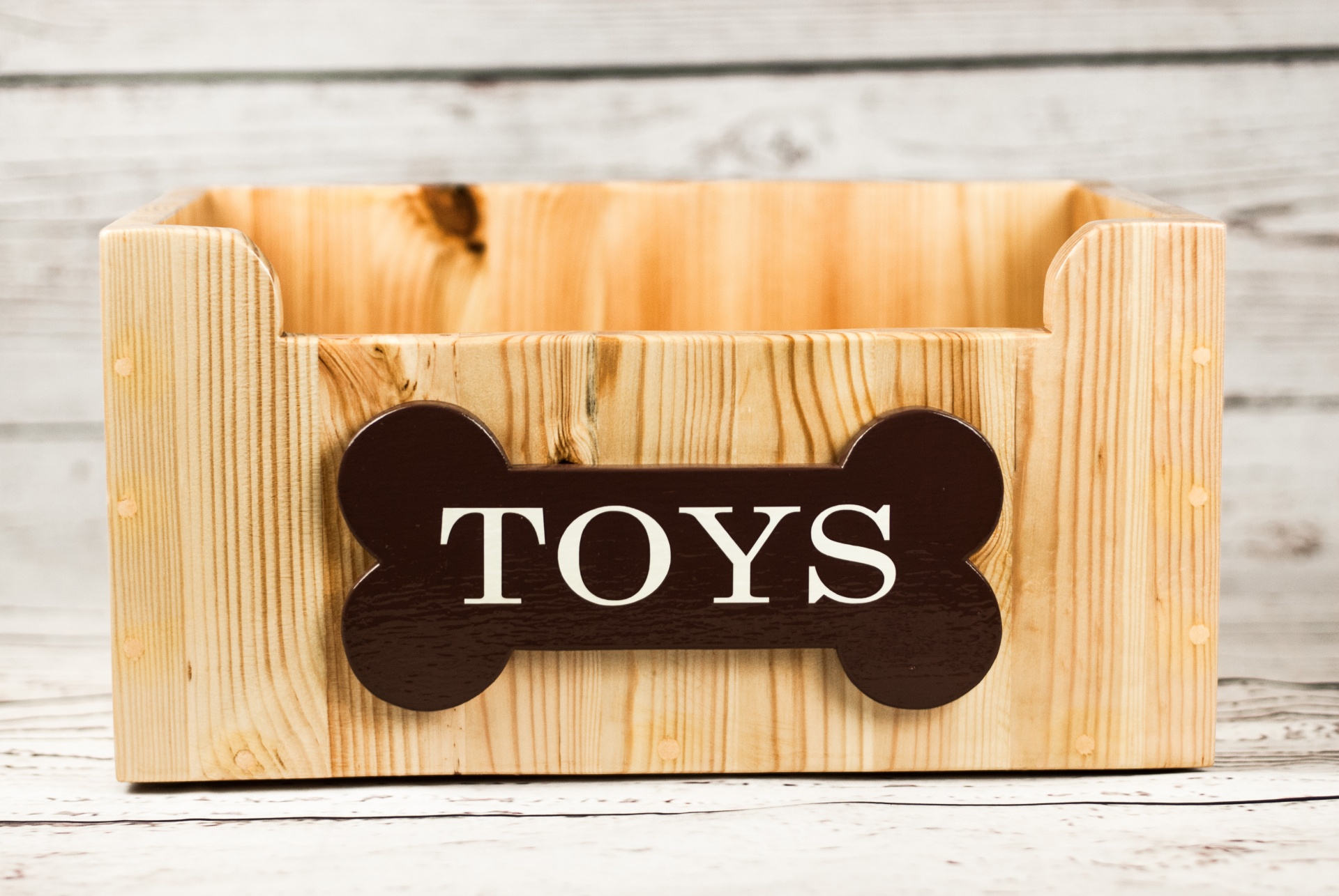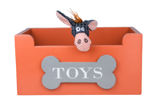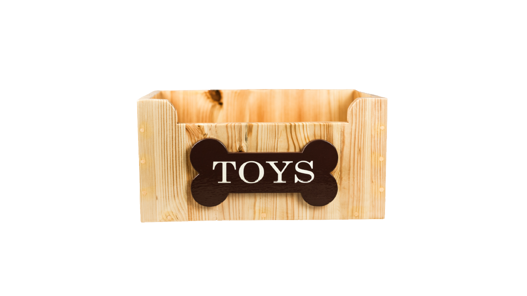 Uma caixa aberta, de fácil acesso para os patudos irem buscar os brinquedos desejados. Possui borrachas antiderrapantes na base para que a caixa fique estável e não se mova facilmente.