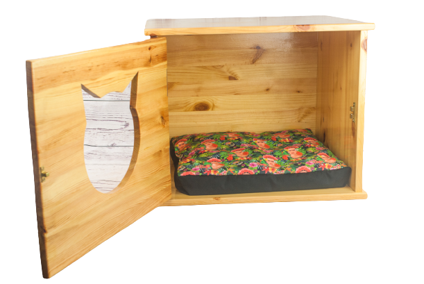 Casa de Gatos 154,99 € Desconto de %. IVA incluído. Partilhar Comprar Contactar Casinha para gatos feita em pinho, com entrada em formato cabeça de gato. Todas as ferragens e parafusos são em inox. Puxador em inox, com íman. Inclui o colchão Cor: Madeira com acabamento em verniz Todas as peças são personalizáveis, para alterações de alguma medida / cor enviar email para: woodenpets.concept@gmail.com Marca Wooden Pets Tags Gatoscamacasacasa para gatoscasa gatos em madeiracama para gatos